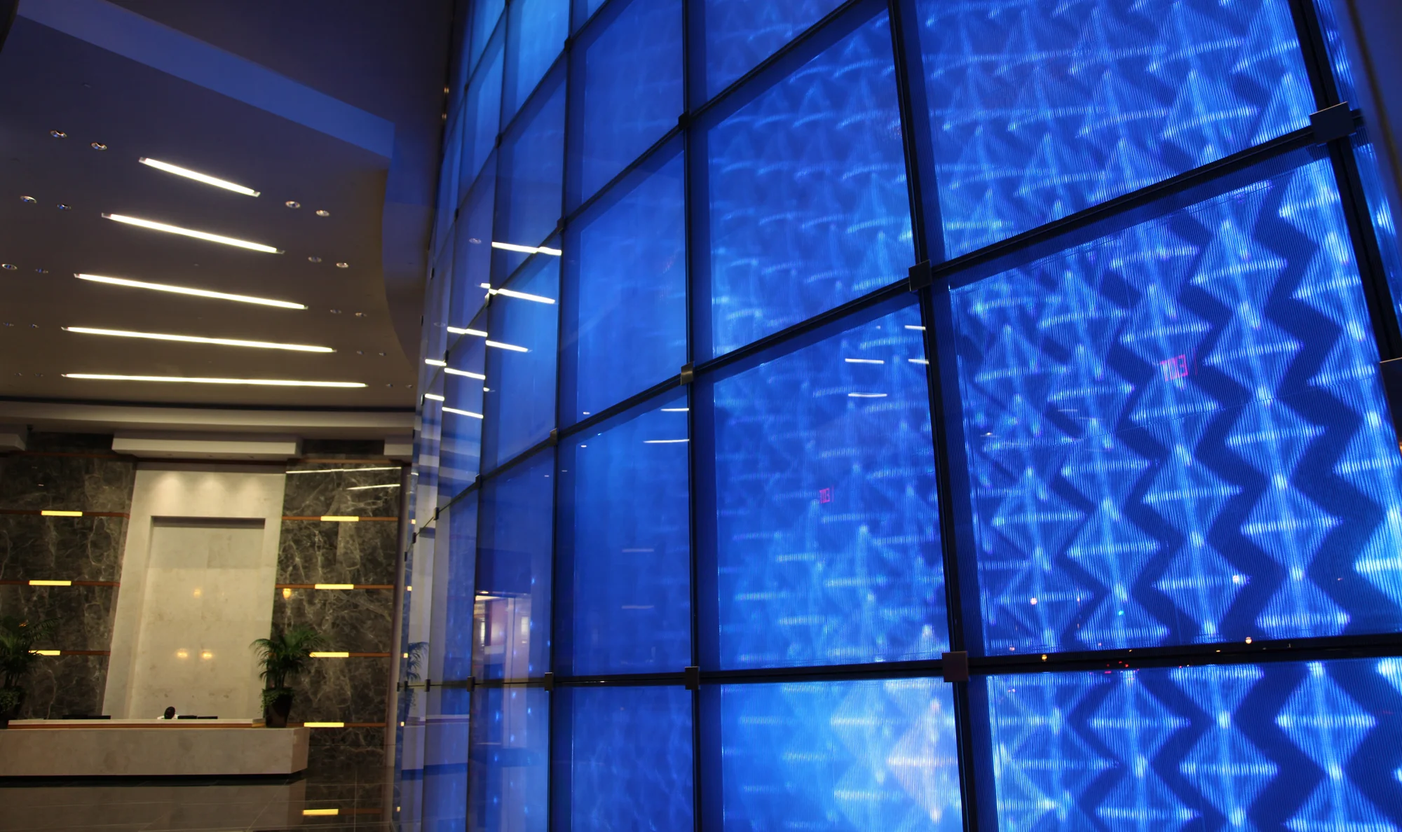 Video content was animating the 2 floors heigh wall covered with LED, creating impactful identity and creating a multimedia architectural facade diffusing digital art.