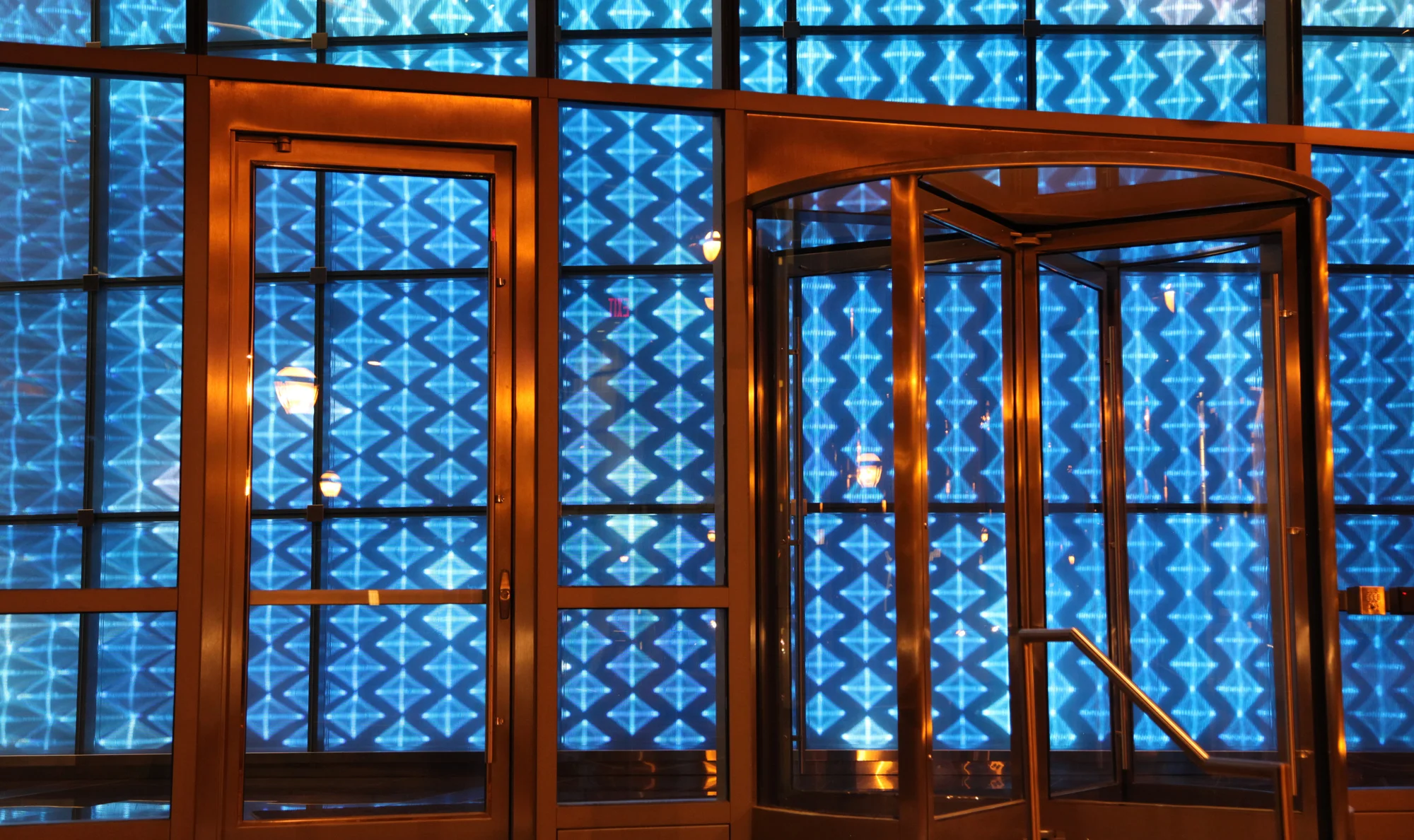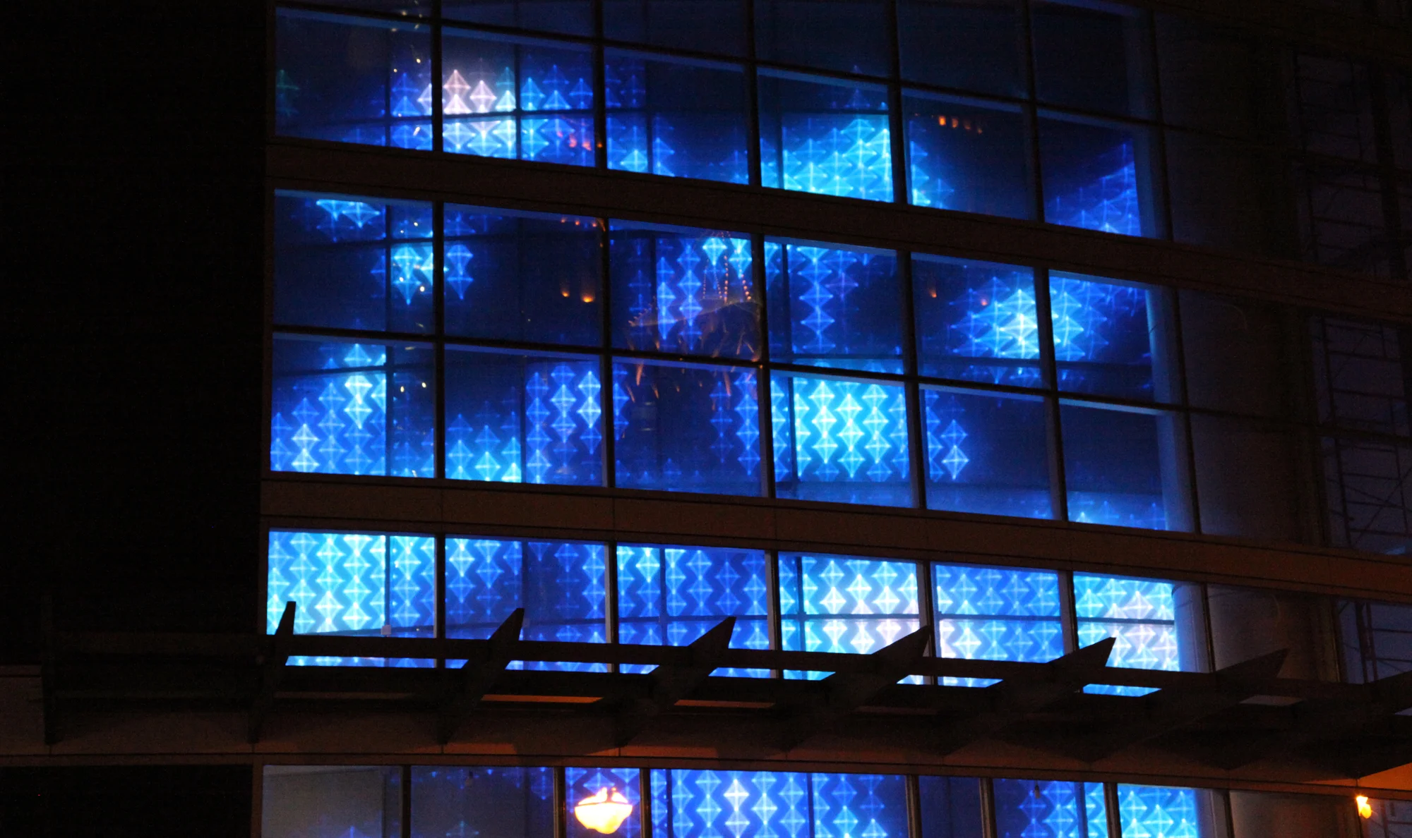 Les videos animaient le mur couvert de LED, créant un impact identitaire et architectural d’un ensemble urbain en créant une façade médiatique qui diffuse de l’art digital.
