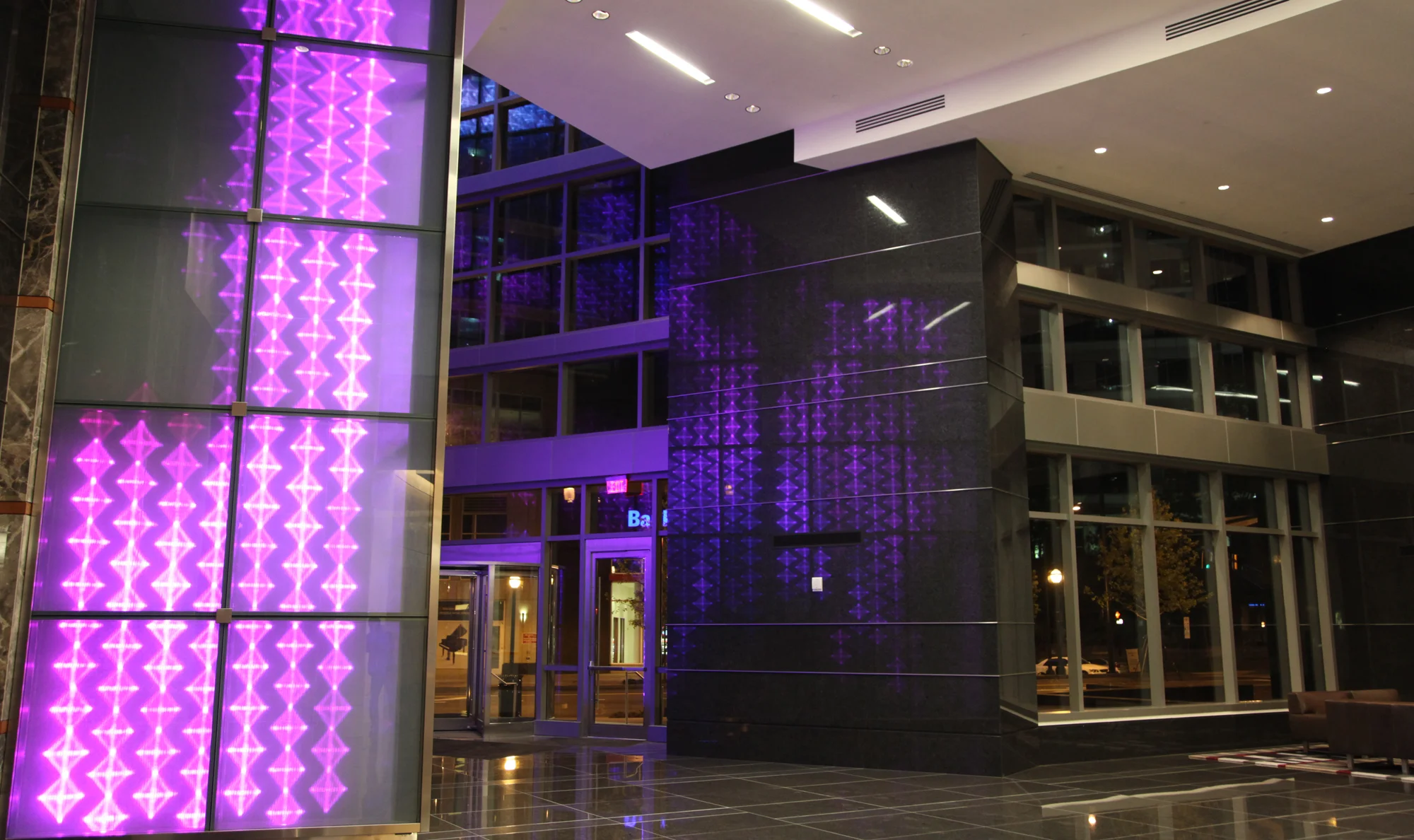 Moment Factory a été convié par PHA Lighting Group à rehausser et rendre emblématique le Hall d'entrée du 1075 Peachtree à Atlanta.,